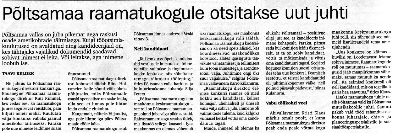Põltsamaa raamatukogule otsitakse.Vooremaa.jpg