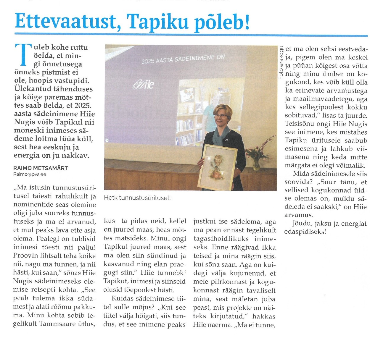 Ettevaatust, Tapiku põleb! Raimo Metsamärt, Põltsamaa Valla Sõnumid 12.02.2026 nr 276, lk 4