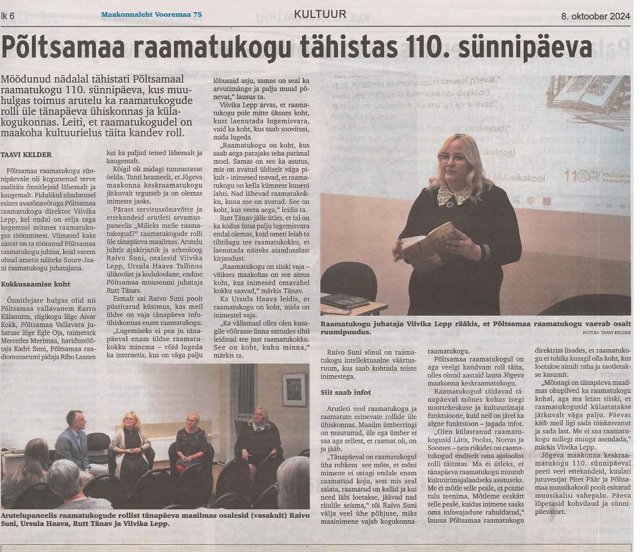 Põltsamaa raamatukogu tähistas 110. sünnipäeva Taavi Kelder, Vooremaa 8.10.2024 nr 76 lk 6