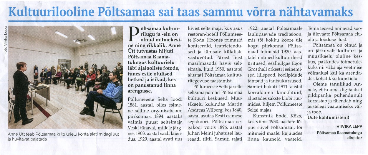 Põltsamaa Raamatukogu 110Viivika Lepp, Põltsamaa Vallaleht veebruar 2024, lk7