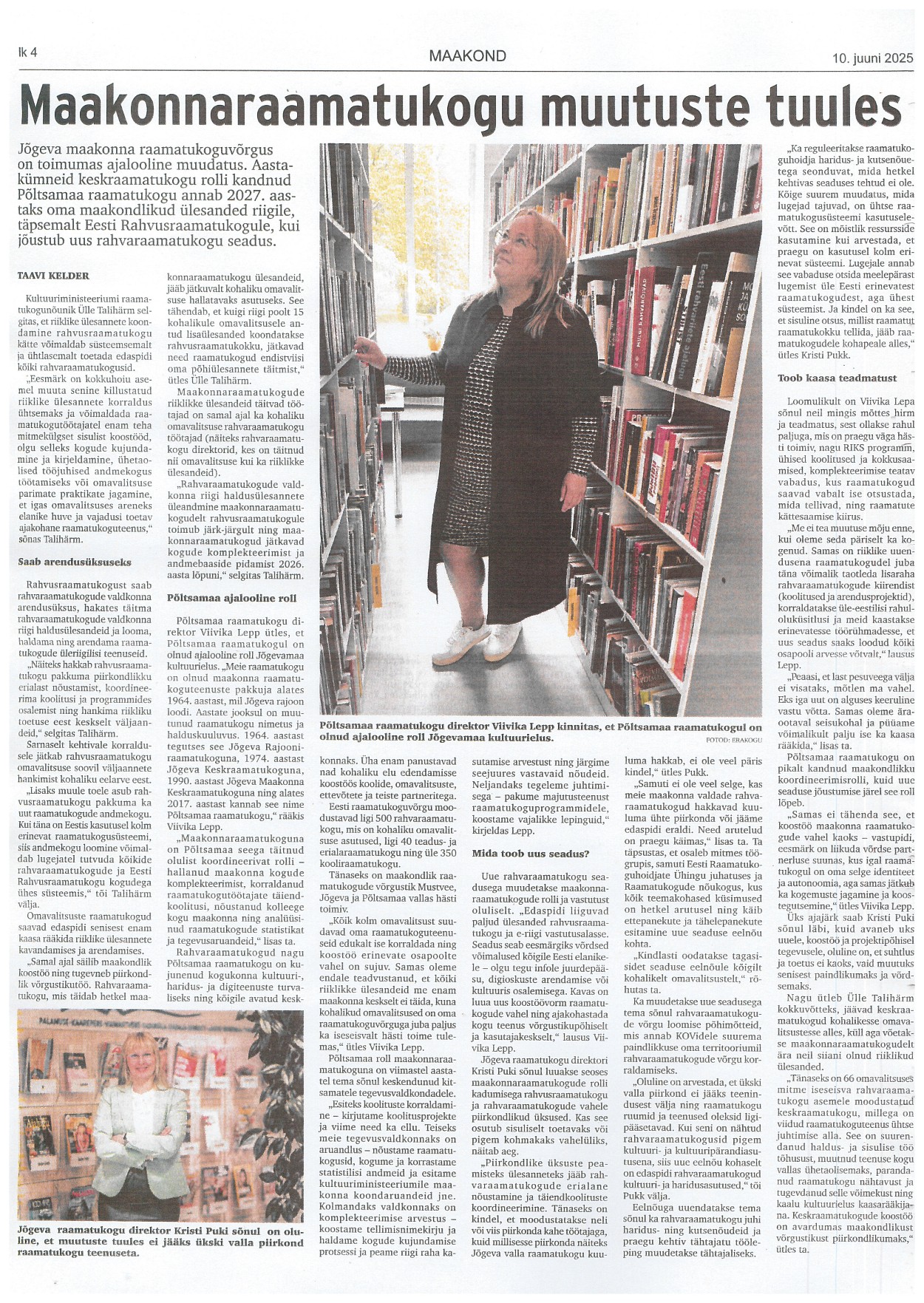Maakonnaraamatukogu muutuste tuules Taavi Kelder, Vooremaa 10.06.2025, nr 42, lk 4