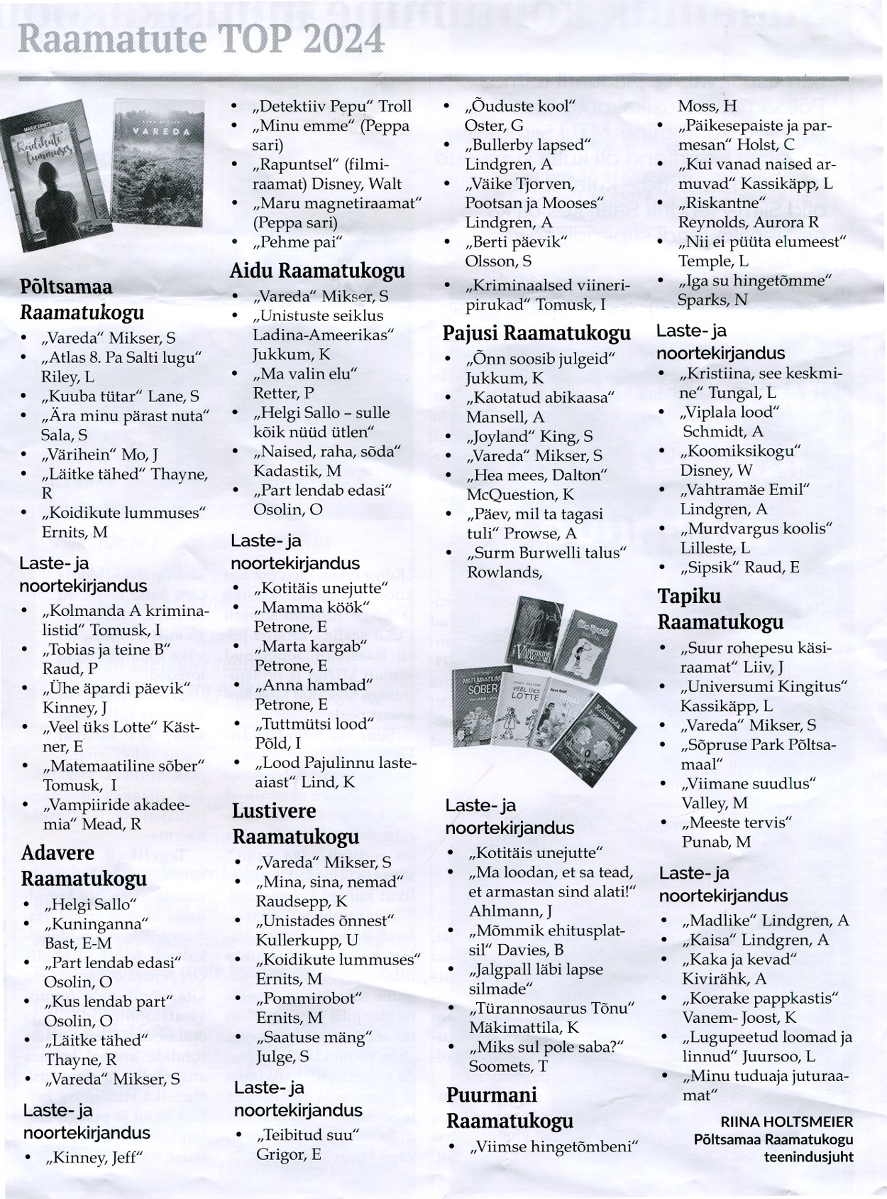 Raamatute TOP 2024 Riina Holtsmeier, Põltsamaa Valla Sõnumid 16.01. 2025,nr 224, lk 2