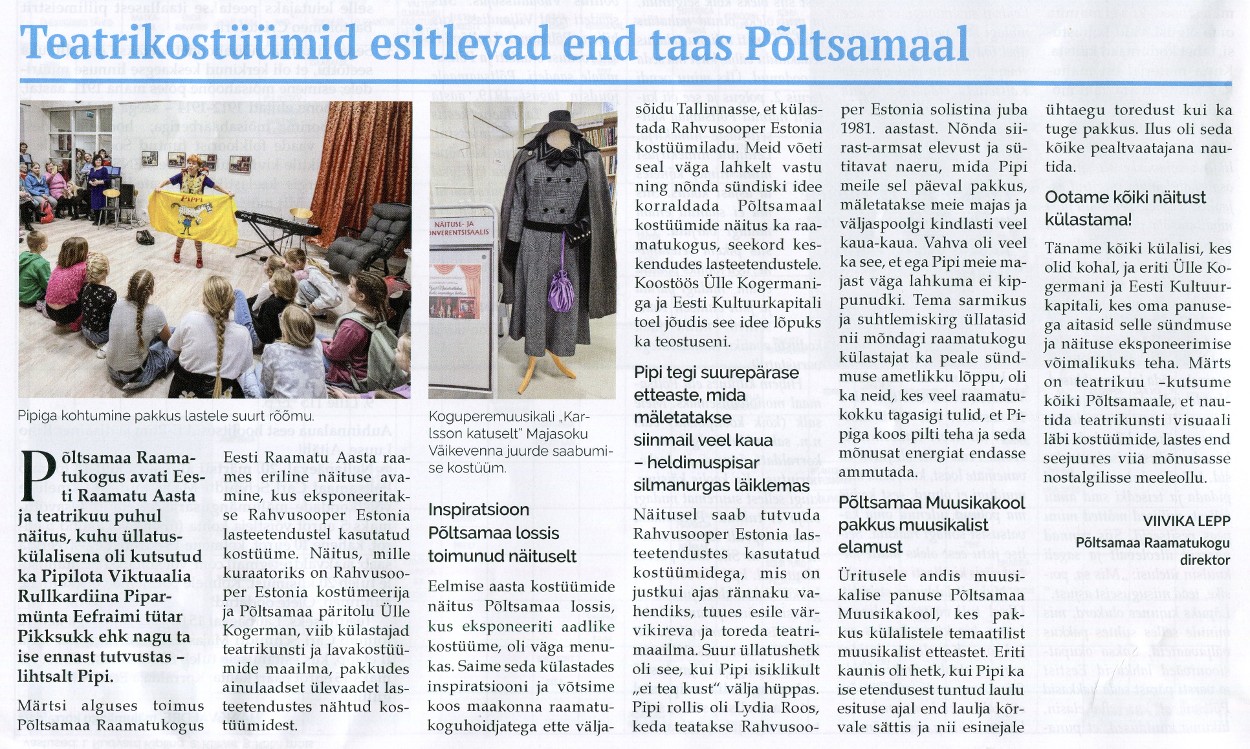Teatrikostüümid esitlevad end taas Põltsamaal Viivika Lepp, Põltsamaa Valla Sõnumid 13.03.2025, nr 232, lk 4