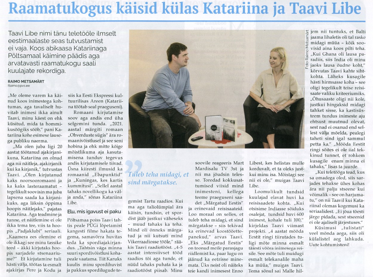 Raamatukogus käisid külas Katariina ja Taavi Libe Raimo Metsamärt, Põltsamaa Valla Sõnumid 24.04.2025, nr 238, lk 5