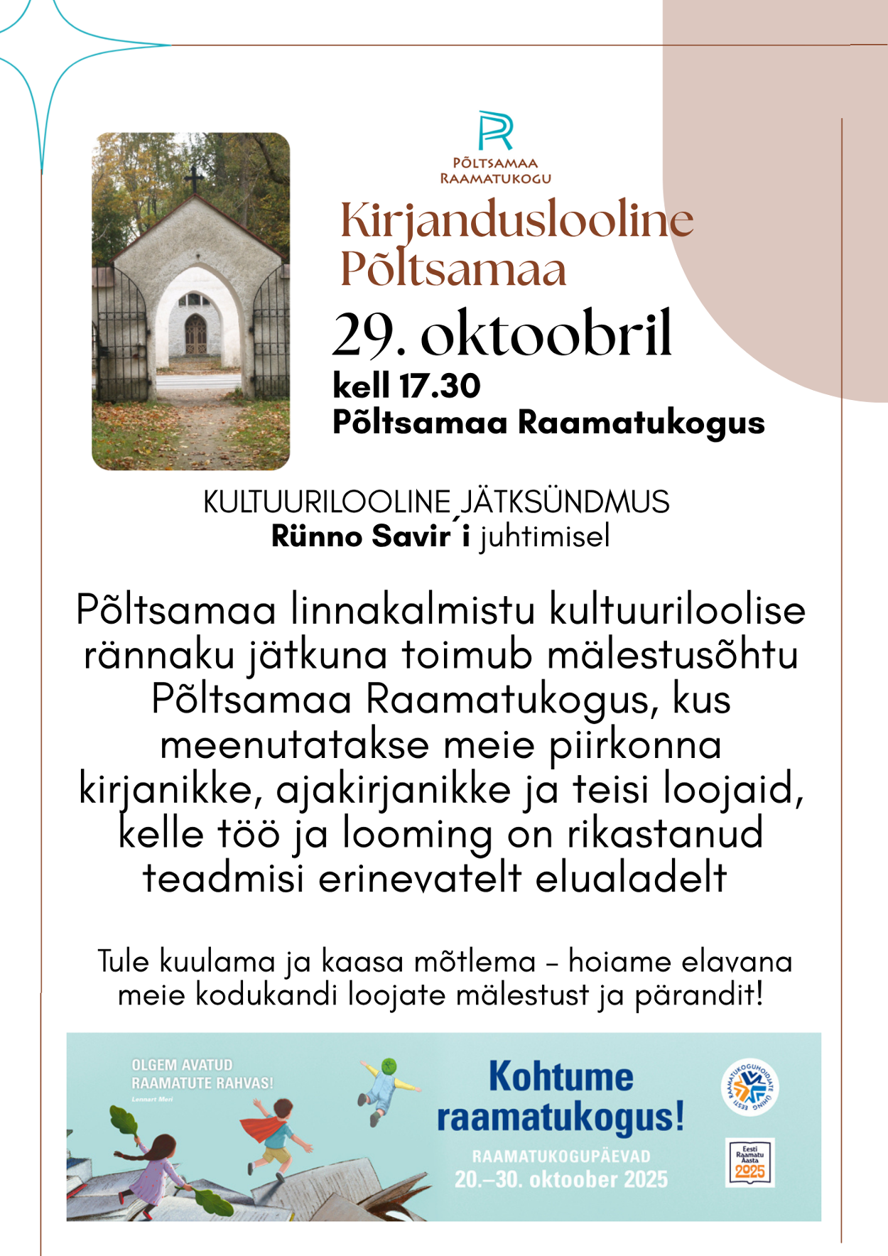 poltsamaa@poltsamaark.ee (info) viivika.lepp@poltsamaark.ee (direktor) Loreida.Kuppas@poltsamaark.ee (peaspetsialist) Riina.Holtsmeier@poltsamaark.ee (teenindusjuht) laenutus@poltsamaark.ee (täiskasvanute osakond, laenutustähtaja pikendamine) Viivi.Tell@poltsamaark.ee (laste- ja noorteosakond) Maris.Oro@poltsamaark.ee (kogude arenduse osakond) |